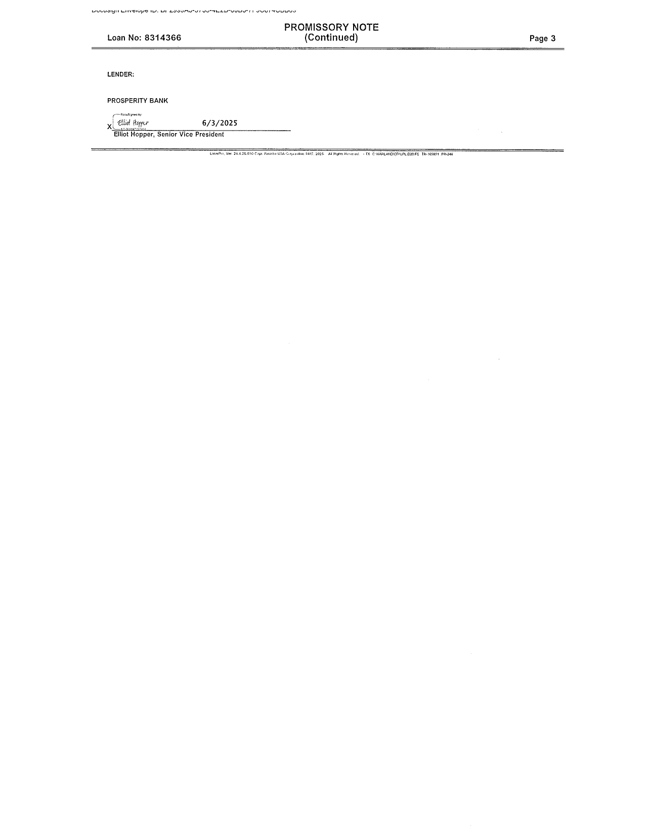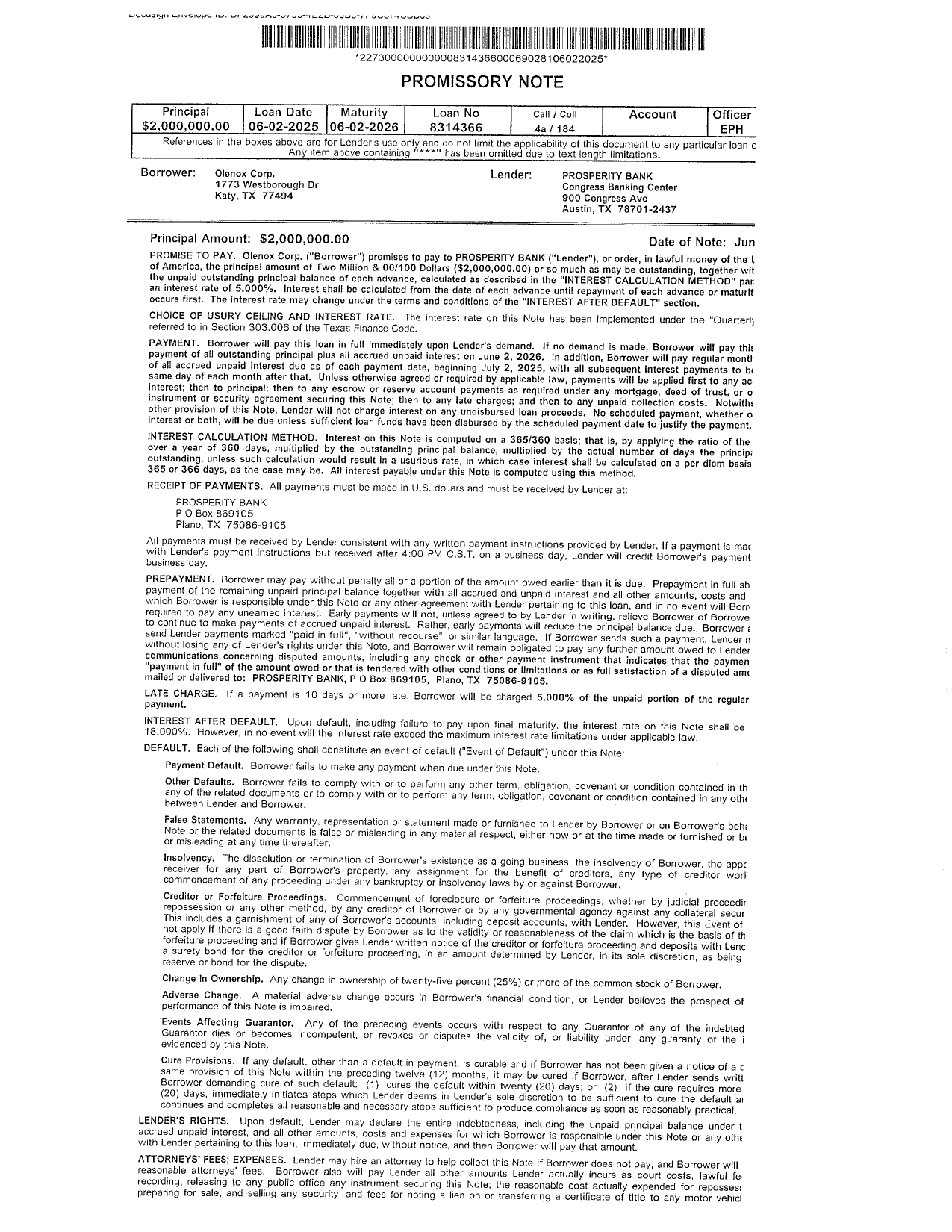 | 10.1 | Promissory Note dated June 2, 2025 in favor of Prosperity Bank | |