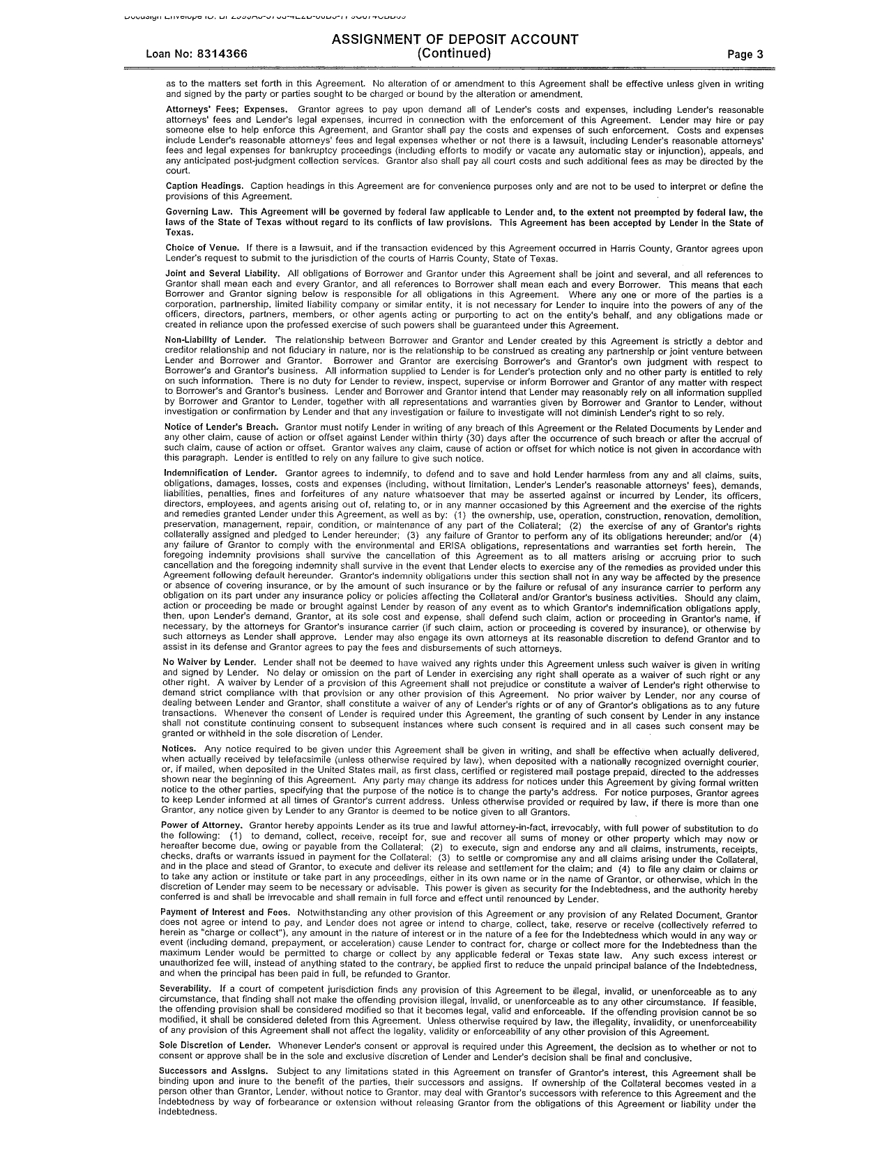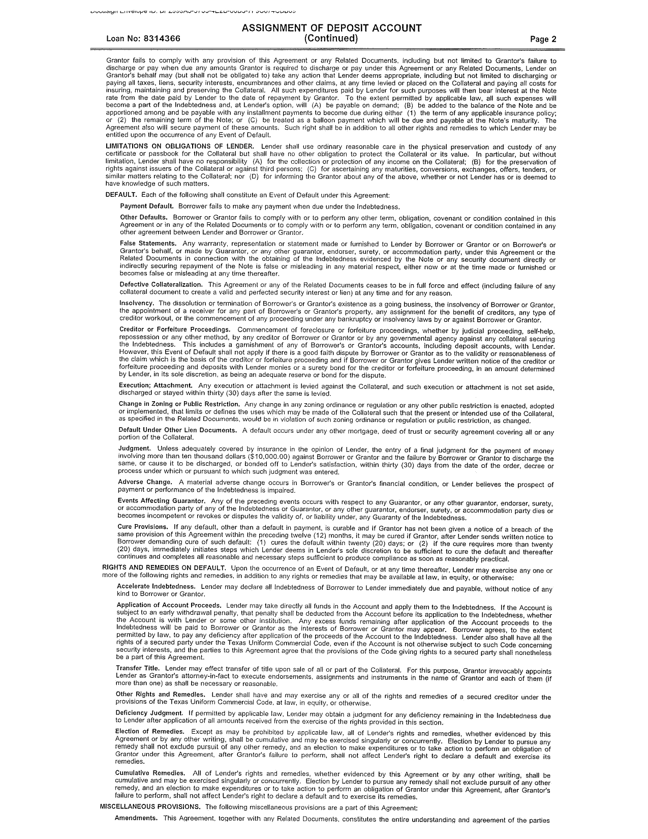 The Note contains covenants applicable to the Borrower pertaining to the line of credit, including, among others, that the Borrower agrees to: maintain books and records of its operations (the “Books and Records”) to the need for the line of credit; permit the Lender or any of the Lender’s representatives, inspect and/or copy the Books and Records; and to provide the Lender any documentation requested which support the reason for making any advance under the line of credit. Further, the Note provides that the Borrower shall furnish from time to time to the Lender, upon the Lender’s request, copies of balance sheets of the Borrower, and copies of statements of income and cash flows of the Borrower.